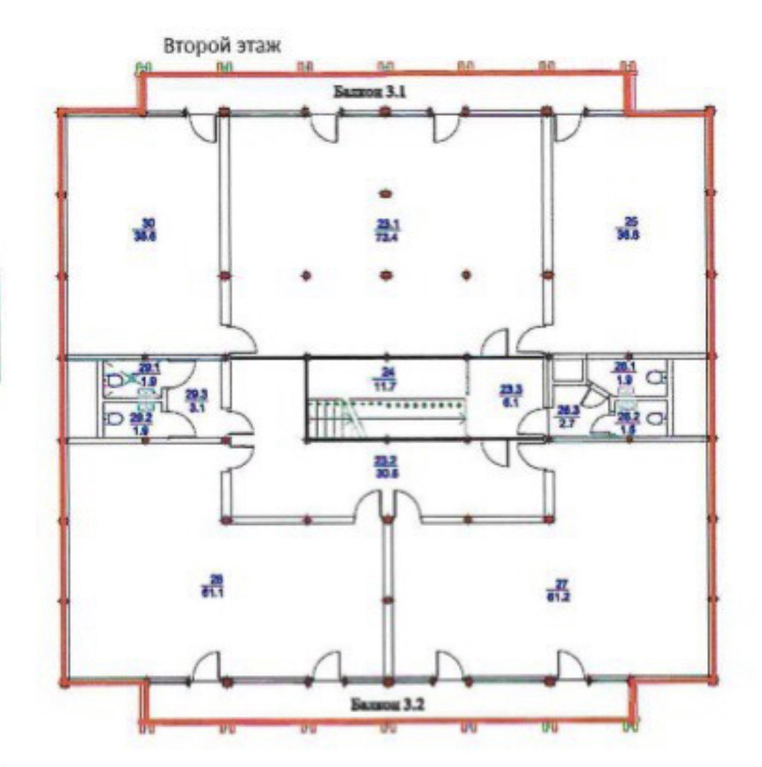 - Второй этаж — пространство руководства: Предназначен для топ-менеджмента с большими кабинетами и панорамным остеклением, создающим ощущение простора и статуса.